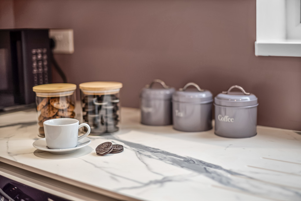 The Open Plan Kitchen is equipped with Compact Laminate worktops, ensuring longevity and durability. Equipped with two sinks and double the appliances for ease and reduced waiting time, this kitchen is proportionately and largely sized to cater for multiple use simultaneously. There is also cosy living space area for occupants to unwind and socialise.